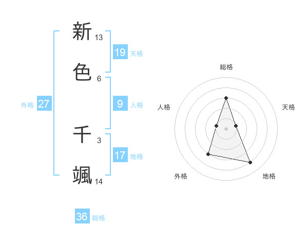 新色 千颯さんの天格は19画の1点!