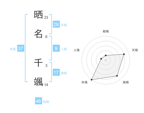 晒名 千颯さんの外格は37画の5点!