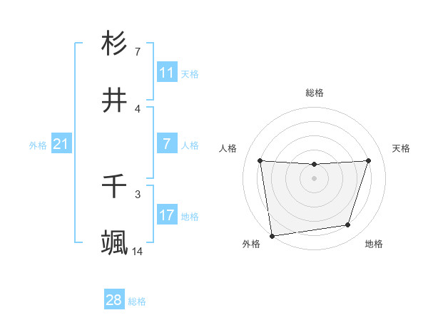 杉井 千颯さんを姓名の画数から五運を鑑定