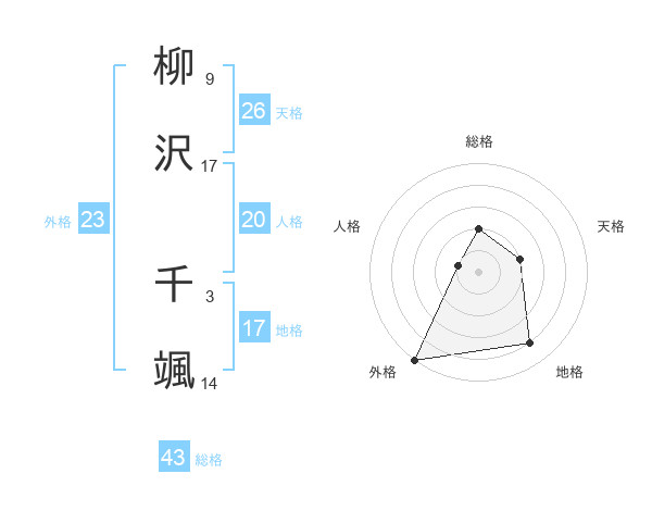 柳沢 千颯さんを姓名の画数から五運を鑑定