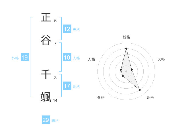 正谷 千颯さんを姓名の画数から五運を鑑定