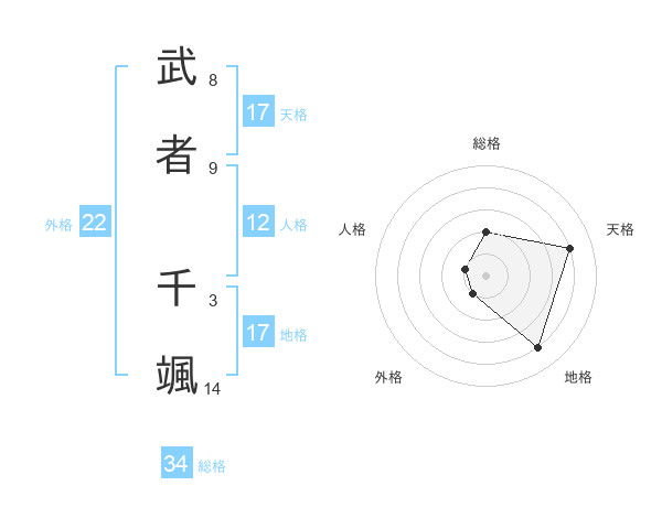 武者 千颯さんの総格は34画の2点!