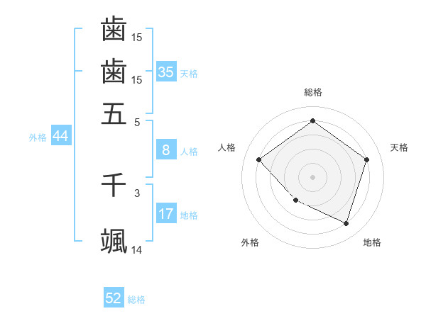 歯歯五 千颯さんを姓名の画数から五運を鑑定