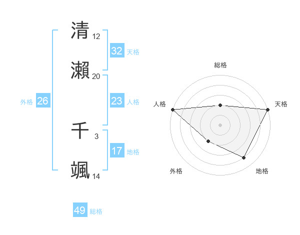 清瀨 千颯さんの天格は32画の5点!