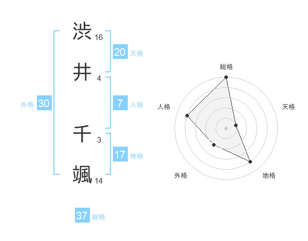 渋井 千颯さんの総格は37画の5点!