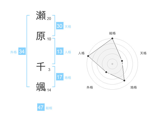 瀬原 千颯さんを姓名の画数から五運を鑑定