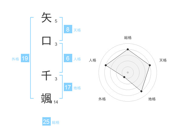 矢口 千颯さんの総格は25画の4点!