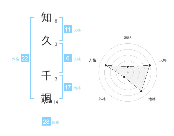 知久 千颯さんの外格は22画の1点!