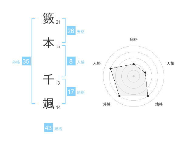 籔本 千颯さんの総格は43画の2点!