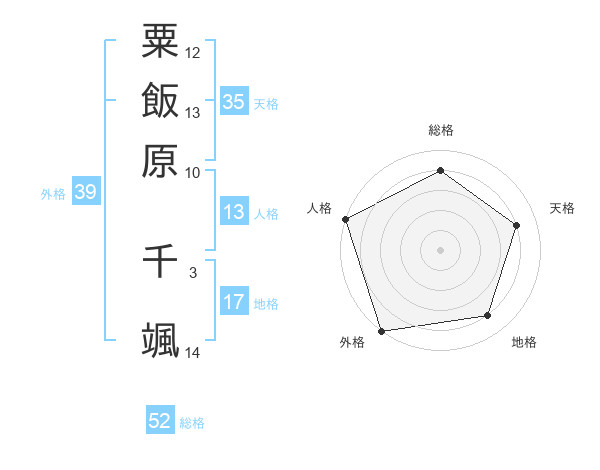 粟飯原 千颯さんの総格は52画の4点!