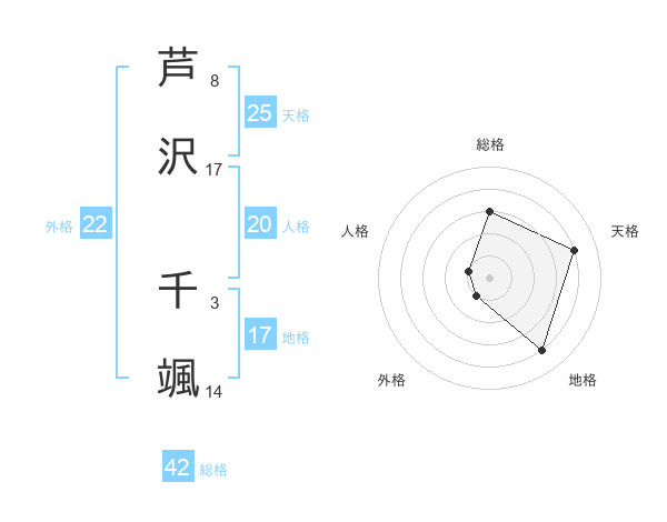 芦沢 千颯さんの総格は42画の3点!