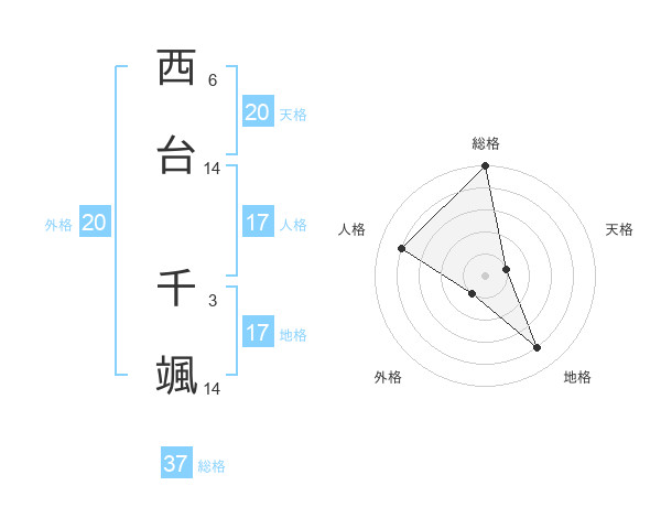 西台 千颯さんの総格は37画の5点!