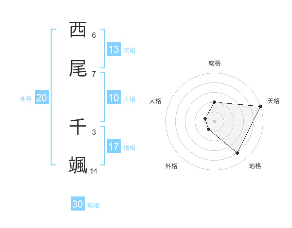 西尾 千颯さんの天格は13画の5点!