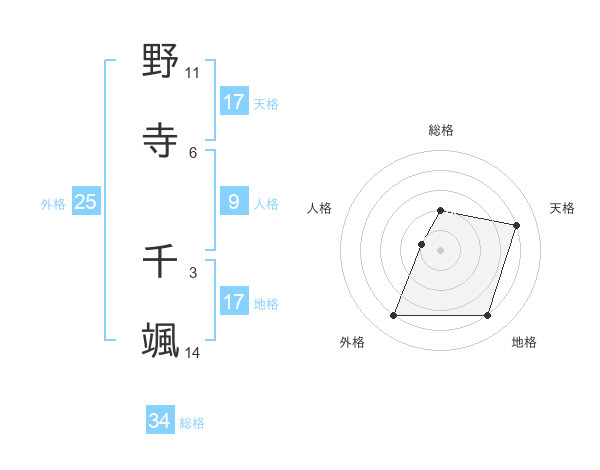 野寺 千颯さんを姓名の画数から五運を鑑定