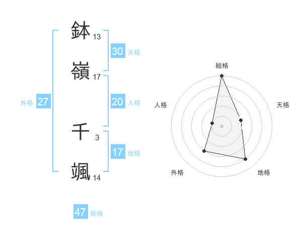 鉢嶺 千颯さんを姓名の画数から五運を鑑定