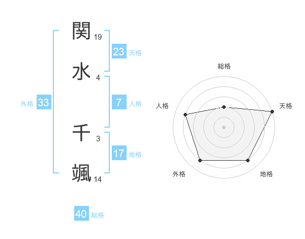 関水 千颯さんの外格は33画の4点!