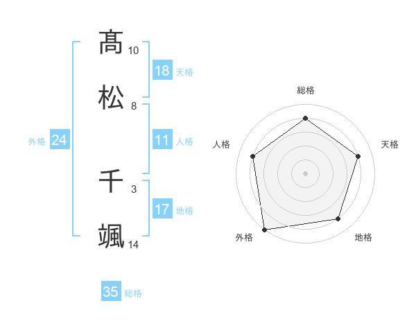 髙松 千颯さんの総格は35画の4点!