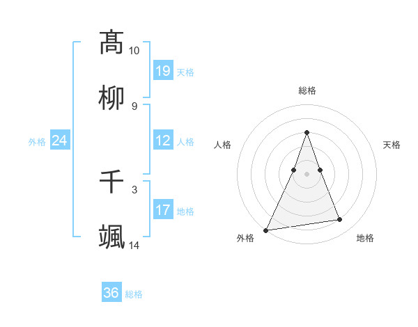 髙柳 千颯さんの外格は24画の5点!