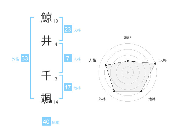 鯨井 千颯さんを姓名の画数から五運を鑑定