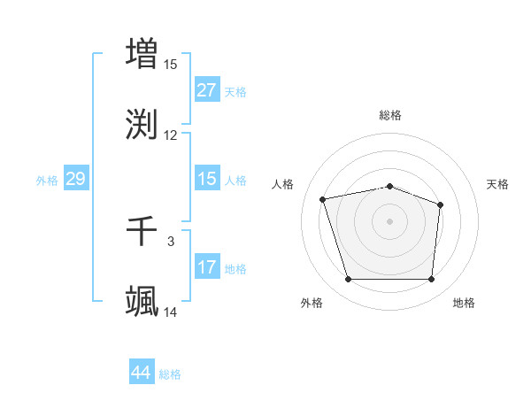 増渕 千颯さんの外格は29画の4点