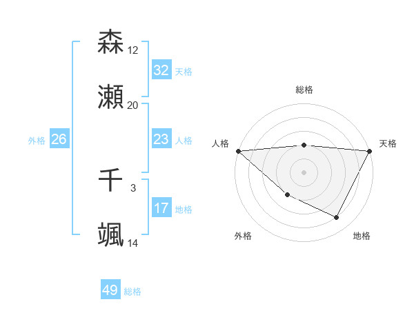 森瀬 千颯さんを姓名の画数から五運を鑑定
