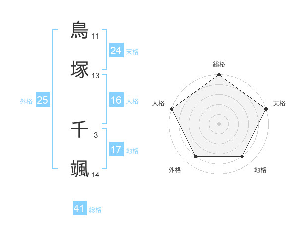 鳥塚 千颯さんの総格は41画の5点!