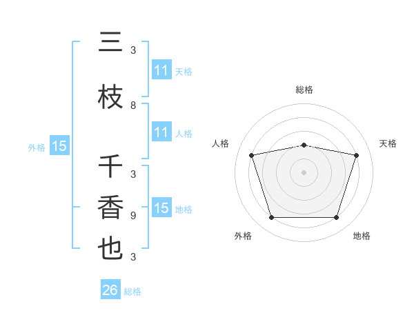 三枝 千香也さんを姓名の画数から五運を鑑定