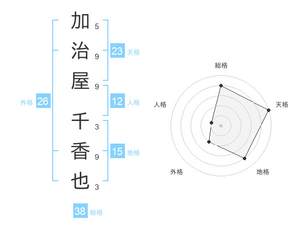 加治屋 千香也さんの天格は23画の5点