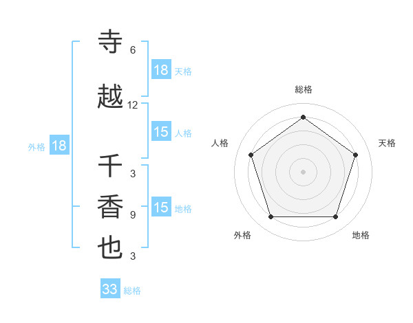 寺越 千香也さんを姓名の画数から五運を鑑定