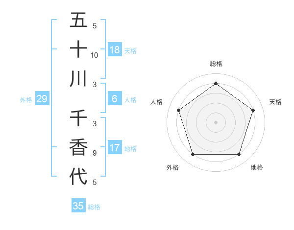 五十川 千香代さんを姓名の画数から五運を鑑定