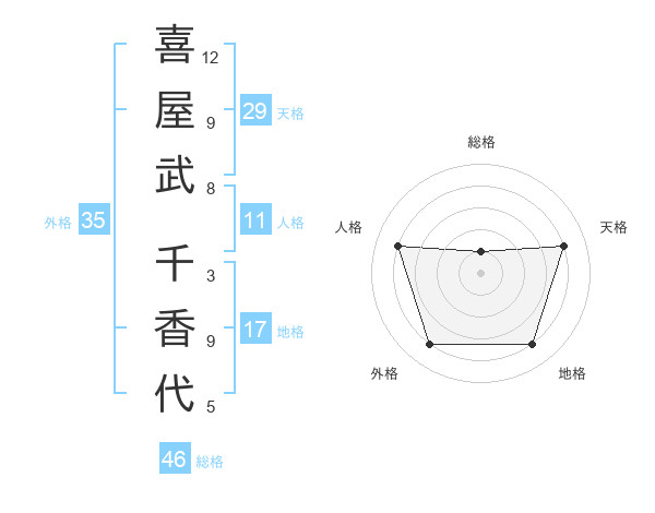 喜屋武 千香代さんを姓名の画数から五運を鑑定