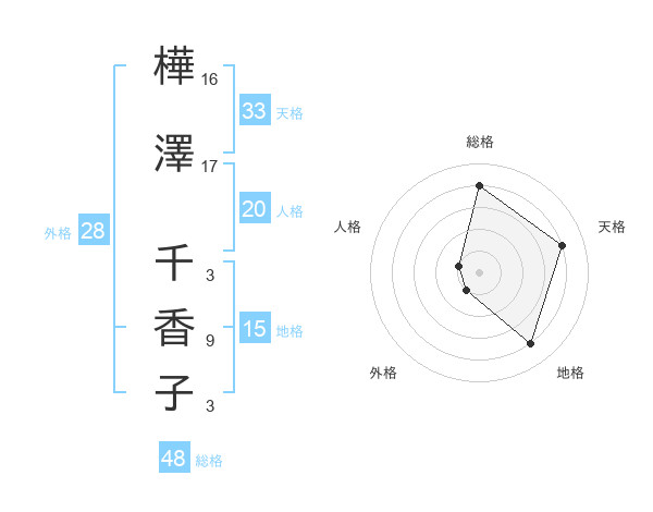 樺澤 千香子さんの天格は33画の4点!