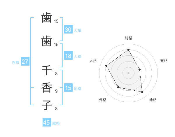 歯歯 千香子さんの総格は45画の4点
