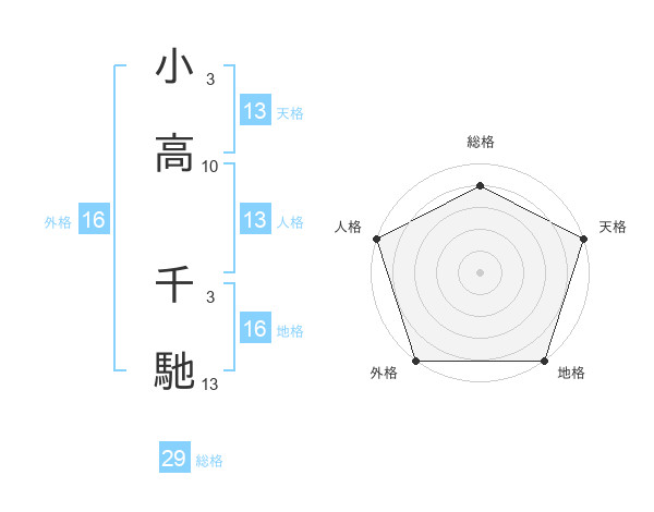 小高 千馳さんの総格は29画の4点!