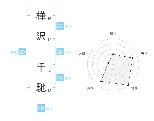 樺沢 千馳さんを姓名の画数から五運を鑑定