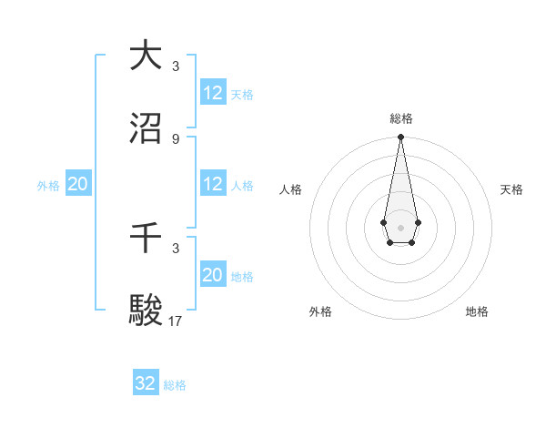 大沼 千駿さんの総格は32画の5点!