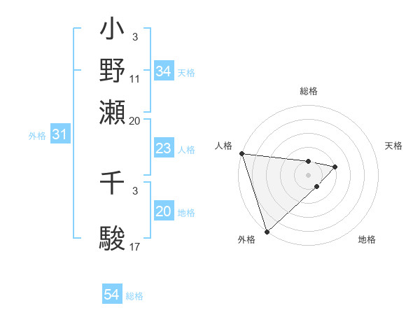 小野瀬 千駿さんを姓名の画数から五運を鑑定