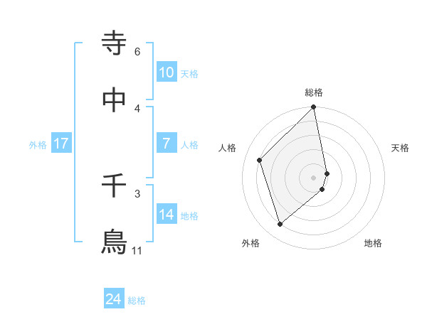 寺中 千鳥さんを姓名の画数から五運を鑑定