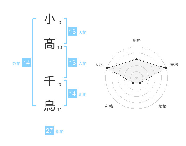 小髙 千鳥さんを姓名の画数から五運を鑑定