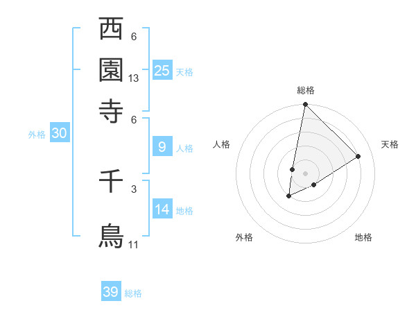 西園寺 千鳥さんを姓名の画数から五運を鑑定