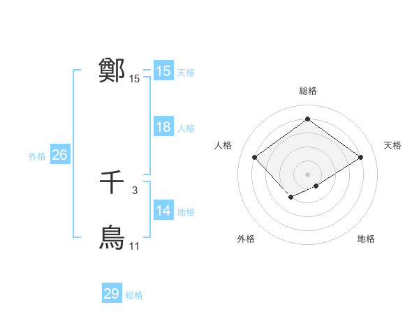 鄭 千鳥さんを姓名の画数から五運を鑑定
