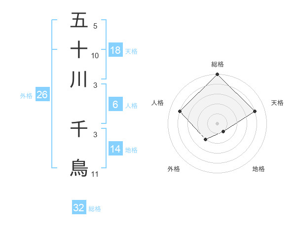 五十川 千鳥さんを姓名の画数から五運を鑑定