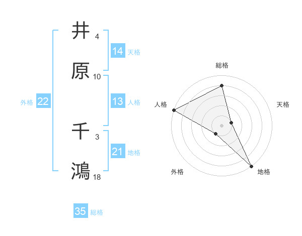 井原 千鴻さんを姓名の画数から五運を鑑定