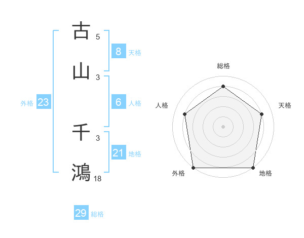 古山 千鴻さんを姓名の画数から五運を鑑定