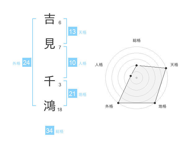 吉見 千鴻さんを姓名の画数から五運を鑑定