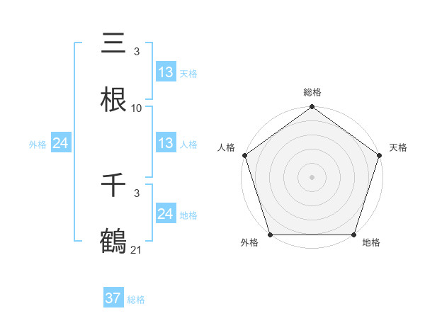三根 千鶴さんの天格は13画の5点!