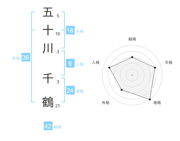 五十川 千鶴さんの外格は36画の3点!