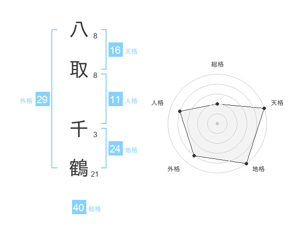 八取 千鶴さんの天格は16画の5点!