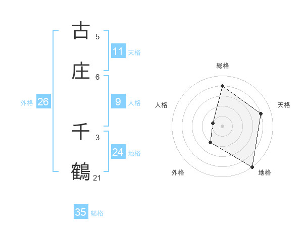古庄 千鶴さんの総格は35画の4点!