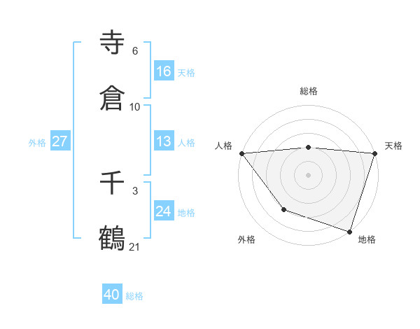 寺倉 千鶴さんの天格は16画の5点!